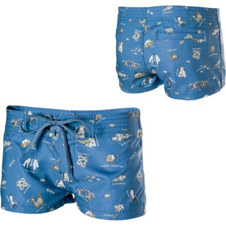 A lot of girls have board shorts, but how many of them have board shorts with a print designed by artist Kevin Lloyd Ancell? While everyone else is prancing around in a suit that they think is sexy, trying to glean a little male attention, you can sit back and remember that there are more important things: art, self confidence, refinement, and bootie shorts that make everything look good. You're just happy that you found all of those things in the RVCA Hawaya Guaya Board Shorts.