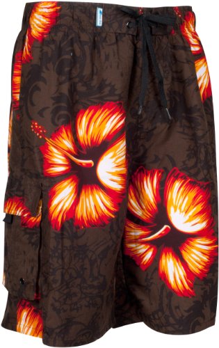 Mens Large Hibiscus Print Skate Surf Board Short / Swim Trunks Review