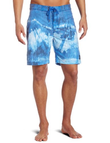 Australian born fashion label with deep roots in surf. boardshort with pigment printed tie dye yardage, hand sanding detail & trash wash.