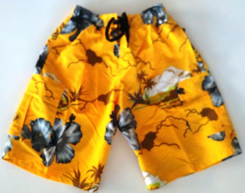 Mens Board Short / Swim Trunks. Elastic waist with board short front closure, slit pockets and side flap pockets. Fully lined. Gold / Beach Floral in sizes S-XXL. Review
