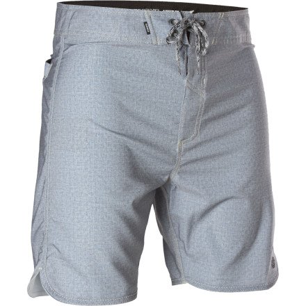 Blast out of barrels with the stretchy, recycled Element Cham Pow 18 Eco Flex Board Short's semi-retro, above-the-knee fit aiding your aggressive surf style.